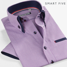 SmartFive 夏季商务休闲千鸟格衬衫男短袖双层领韩版修身时尚衬衣