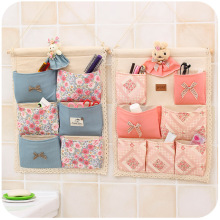 田园碎花挂袋墙面收纳袋挂袋门后储物袋棉麻布艺杂物整理袋多口袋