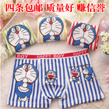 四条包邮纯棉卡通机器猫儿童内裤 莱卡全棉男童学生平角短裤 可爱