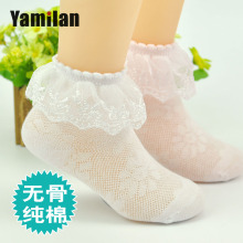 儿童袜子 纯棉 女童网眼花边袜 宝宝短袜 夏天透气无骨蕾丝公主袜