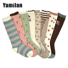儿童中筒袜 秋冬款纯棉 女童中筒袜子 提花条纹袜 中大童包腿袜