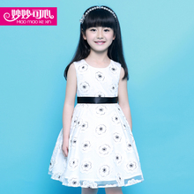 妙妙可心女童公主连衣裙2017夏装新款童装中大童纱裙儿童裙子绣花
