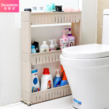 可移动夹缝置物架 塑料带轮厨房卫生间收纳架 浴室角架缝隙整理架
