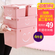 手提塑料收纳箱四件套衣柜衣服收纳盒宿舍玩具衣物储物整理箱小号