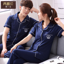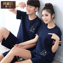 韩版情侣睡衣夏季纯棉短袖短裤男女式全棉休闲夏天家居服薄款套装