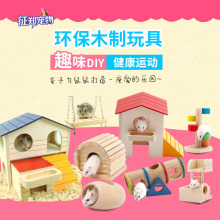 仓鼠原木玩具用品 吊链秋千翘翘筒 跷跷板 攀爬梯 彩虹秋千隧道