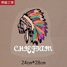 OM62烫画之家欧美个性印第安野人头像名族风格大号热转印烫画布贴