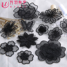 黑色蕾丝布贴欧根纱大小号补丁贴衣服裙装饰DIY刺绣贴花服装辅料
