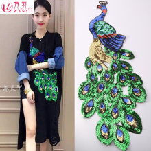 大号孔雀亮片刺绣布贴卫衣旗袍衣服布贴花珠片装饰贴花服装补丁贴