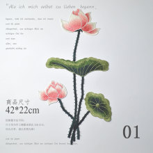 精品外单奢华刺绣莲花布贴补丁贴辅料旗袍贴花刺绣花朵 荷花贴布