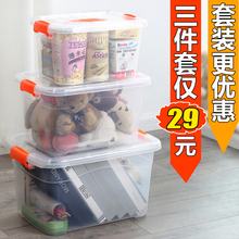 加厚收纳箱手提储物箱塑料整理箱收纳盒有盖小号装衣服箱子三件套