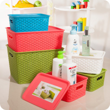 大号有盖塑料收纳盒编织收纳筐桌面收纳篮子玩具杂物收纳箱整理箱
