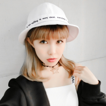 渔夫帽女椰子家韩国春夏新款休闲个性字母长飘带纯棉百搭盆帽韩版