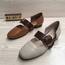 新款春季真皮女鞋时尚欧美皮带扣休闲工作鞋牛皮百搭低跟平底单鞋