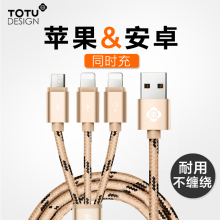 TOTU二合一拖多功能安卓苹果6数据线iphone一拖三多头手机充电器