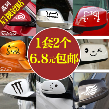 汽车后视镜贴纸一对搞笑可爱黑色卡通国旗车贴刮痕贴改装装饰用品