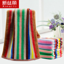 新丝丽 新品纯棉洗脸巾彩色竖条毛巾柔软舒适毛圈割绒随机四条装