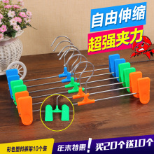 塑料裤架裤夹衣架强力防滑裤架服装店裤挂夹 伸缩衣架10个装