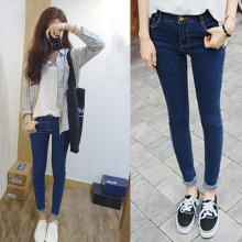 2017春秋韩版九分牛仔裤女高腰弹力紧身显瘦小脚休闲铅笔长裤子潮