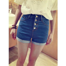 夏季胖MM大码韩范高腰牛仔短裤女士显瘦卷边排扣修身弹力热裤女潮
