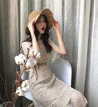 夏季女装韩版chic复古气质蕾丝钩花连衣裙+内搭吊带中长裙两件套