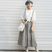 2017春夏新款韩版小清新格子半身裙学生背带裙子高腰A字中长裙女