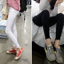 韩国春夏薄款黑白色弹力破洞九分牛仔裤女毛边紧身显瘦打底裤外穿