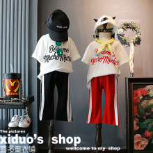 喜多家童装2017夏装新品女童街头潮范儿随性宽版字母T+运动喇叭裤