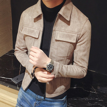 马卢达春季韩版男士鹿皮绒修身外套男 青年休闲翻领夹克衫上衣男