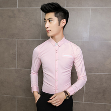 马卢达春夏男士长袖衬衫男韩版时尚修身衬衣潮男英伦潮流打底衬衫