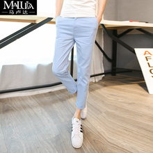马卢达夏装韩版男士九分裤 男英伦修身小脚裤子 青年小直筒9分裤