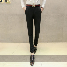 马卢达春夏韩版休闲裤男青年英伦商务修身西裤潮男黑色小脚9分裤