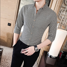 马卢达男士七分袖衬衫休闲格子衬衣男短袖青年英伦商务中袖寸衫潮