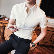 马卢达夏季男士短袖衬衫 韩版修身半袖衬衫 青年英伦白色中袖衬衣