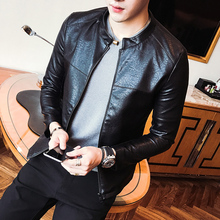 马卢达男士立领休闲皮衣 潮男修身机车夹克PU皮韩版黑色外套青年