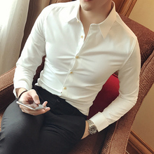 马卢达春装韩版修身衬衫男 英伦纯色长袖衬衣 青年男士商务白衬衫