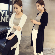 2017春夏季新款韩版口袋防晒衣纯色中长款百搭针织开衫薄外套女潮