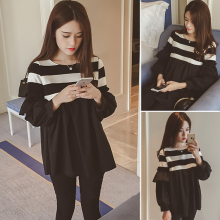 大码裙摆打底衫中长款女秋季小衫韩版女装宽松上衣条纹长袖t恤裙