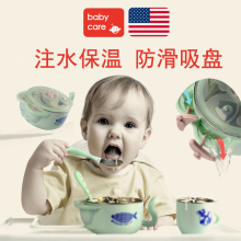 babycare儿童保温碗宝宝餐具注水保暖碗勺婴儿吸盘碗辅食工具套装