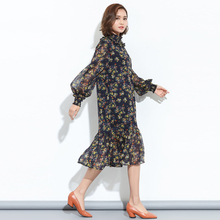 蔷薇欧美灯笼袖复古碎花中长荷叶边裙子大码宽雪纺连衣裙女装春夏