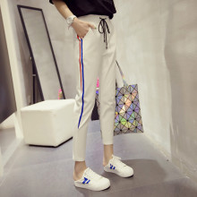2017夏季新款韩版显瘦小脚裤修身运动裤九分裤白色拼条休闲裤女