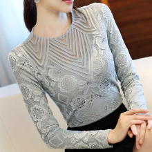蕾丝衫女2017春季新款女装大码加绒上衣女小衫立领时尚长袖打底衫