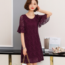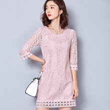 春夏新款A型中长款宽松蕾丝连衣裙女装2017大码短袖套头上衣