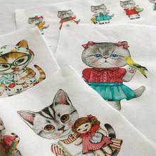 包邮 布料 手工diy 日韩定位印花麻布猫cat卡通面料 喵星人