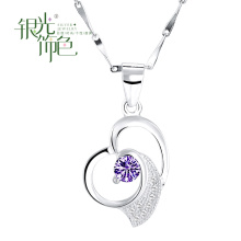 925银 项链女 短款锁骨 韩版时尚 银项链 紫水晶吊坠