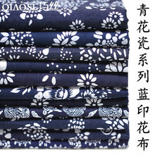 1件包邮纯棉蓝色印花布民族风青花瓷布料桌布茶馆沙发蓝花背景布