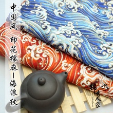 【天天特价】中国风印花棉麻布料 桌布抱枕沙发装饰海浪和风面料