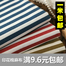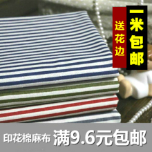 棉麻布印花田园条纹亚麻布料手工桌布窗帘沙发抱枕背景面料满包邮