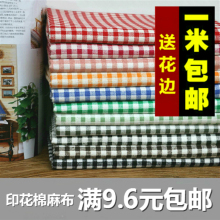 特价印花棉麻面料 田园格子沙发布窗背景布桌布手工diy亚麻布料