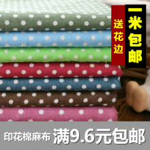 特价印花棉麻面料 田园波点沙发布窗背景布桌布手工diy亚麻布料